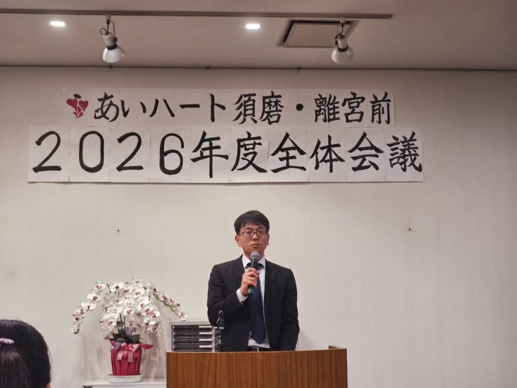 4月1日(水)、「愛の家」と「あいハート須磨・離宮前」の両事業所にて、2026年度のキックオフ(事業計画説明会)を行いました。